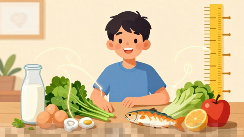 Vitamin D juga memiliki fungsi yang sangat penting dalam proses ini, karena berperan dalam membantu tubuh menyerap kalsium dengan efisien. Kekurangan vitamin D bisa menghambat pertumbuhan tulang dan meningkatkan risiko masalah postur. Vitamin D dapat diperoleh dengan cara terpapar sinar matahari pagi secara rutin dan melalui konsumsi makanan seperti ikan berlemak, kuning telur, serta produk susu yang telah difortifikasi. Selain itu, vitamin C juga turut mendukung pertumbuhan dengan meningkatkan produksi kolagen, yang penting untuk kesehatan tulang dan jaringan ikat. Buah-buahan seperti jeruk, stroberi, kiwi, serta sayuran hijau merupakan sumber vitamin C yang sangat baik untuk anak remaja. Tak kalah penting, zat besi mendukung proses pertumbuhan tinggi dengan membantu produksi hemoglobin, sehingga sel-sel tubuh mendapatkan pasokan oksigen yang cukup. Jika mengalami kekurangan zat besi, anak dapat merasakan gejala seperti lemas, kurang berfokus, dan pertumbuhan yang melambat. Beberapa sumber zat besi yang baik meliputi daging merah, hati, kacang-kacangan, dan sereal yang diperkaya zat besi.